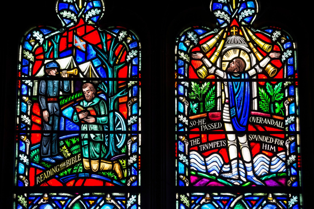 In 1931, some U.D.C. members set out to colonize the most visible house of worship in the country. At one point it suggested memorials for Generals Lee and Jackson, as well as for Jefferson Davis, president of the Confederacy. Finally, in 1953, the cathedral settled on the stained-glass design with Lee and Jackson.