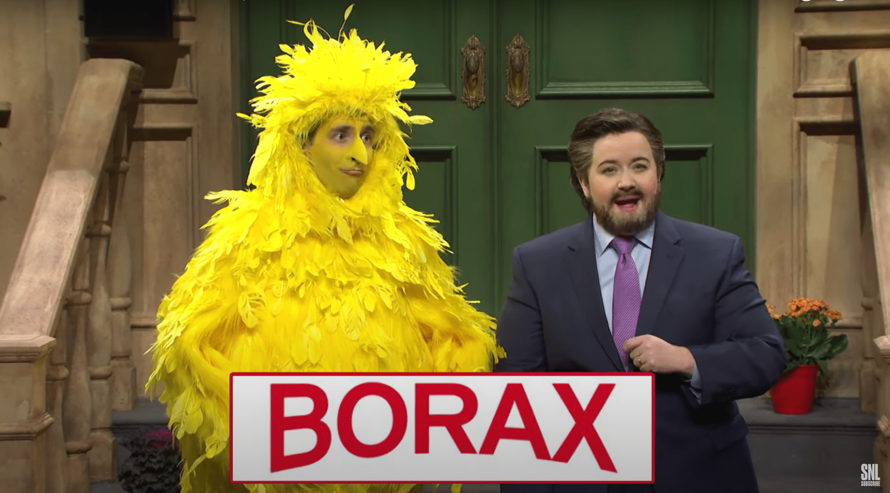 …Bryant’s Cruz was also visited by Kyle Mooney, dressed in a makeshift Big Bird costume…He said that in the week since he had gotten the vaccine, his feathers had fallen out (among other physical side effects he claimed to be experiencing).