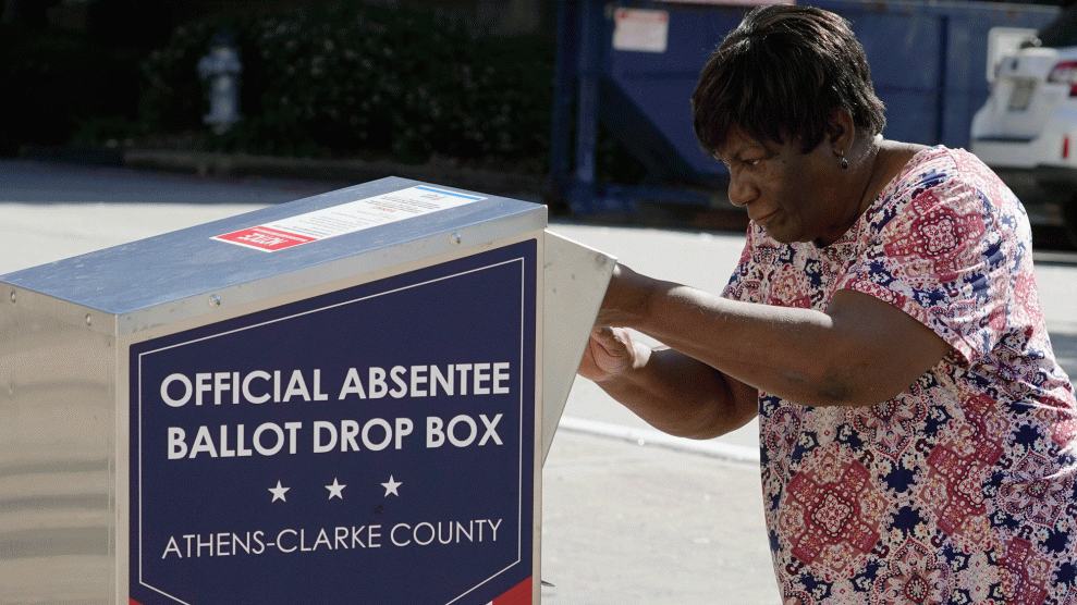 […but f]acts on the ground in Georgia tell a different story. A new data analysis by Mother Jones shows that the number of voters disenfranchised by rejected mail ballot applications skyrocketed after the GOP-controlled legislature passed sweeping new restrictions on mail voting last year.