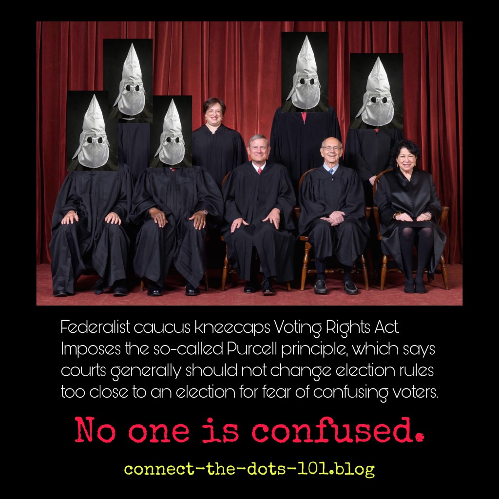 Imposes the so-called Purcell principle, which says courts generally should not change election rules too close to an election for fear of confusing voters. Supreme Court Restores Alabama Voting Map That a Court Said Hurt Black Voters https://www.nytimes.com/2022/02/07/us/politics/supreme-court-alabama-redistricting-congressional-map.html?referringSource=articleShare