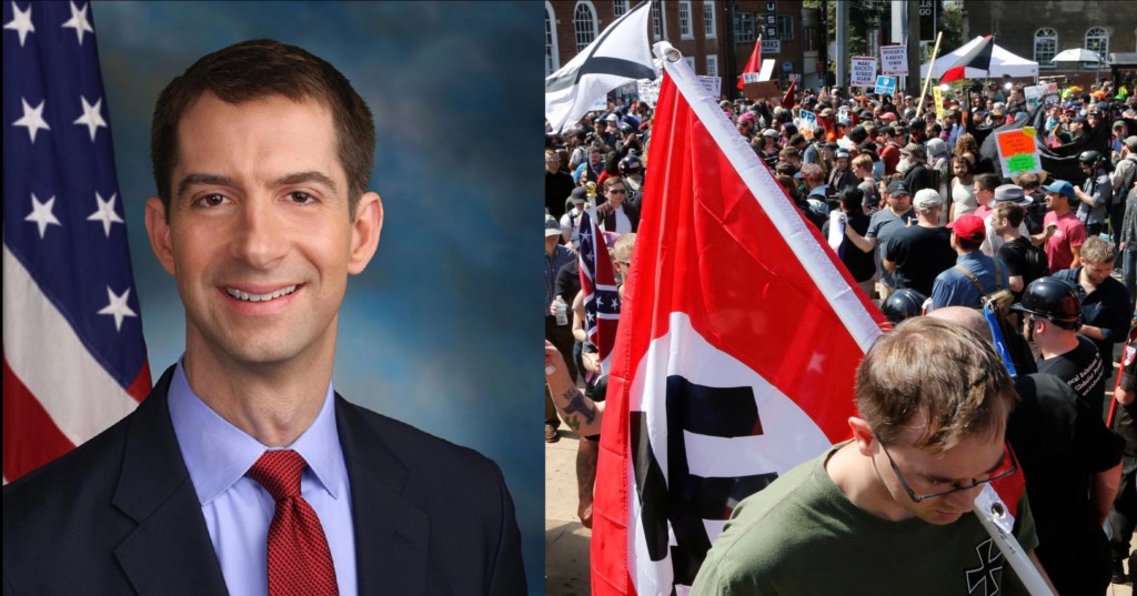One more irony— who has defended Nazis more tellingly than Donald Trump, the head of Tom Cotton’s own Republican Party?