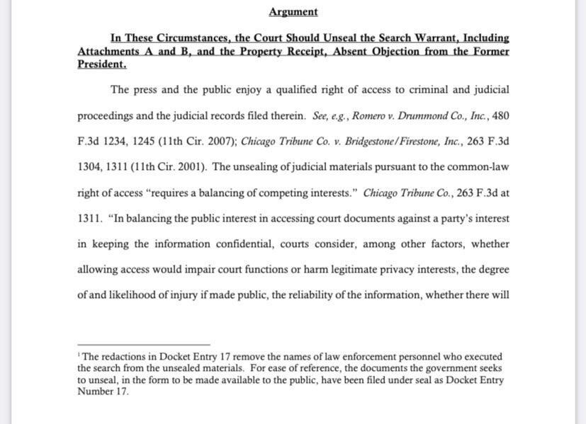 A redacted version of the warrant, which omitted the names of the agents, was officially released hours later.