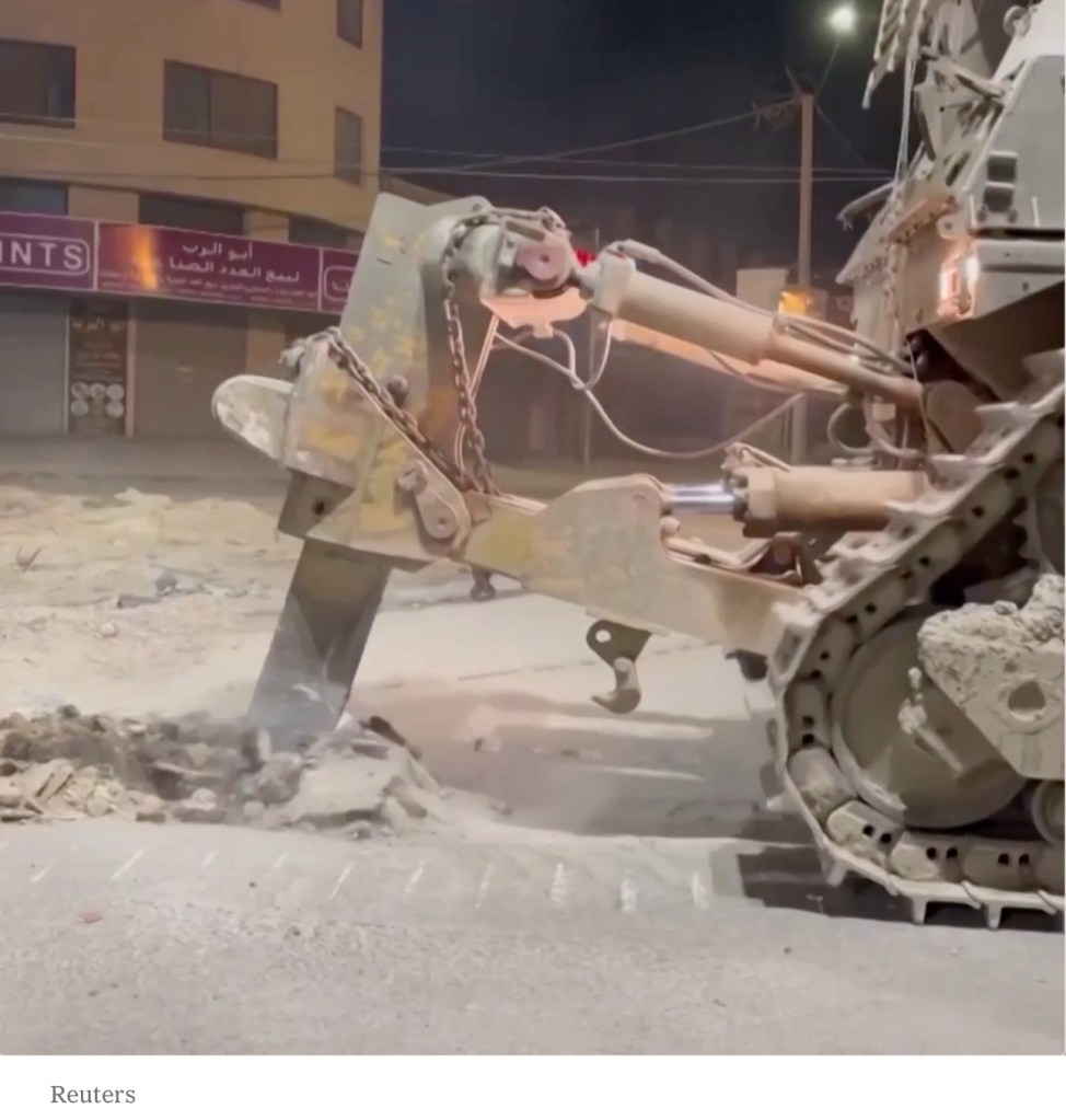 The digging damaged water and sewage pipes. In Tulkarm, home to one of the largest refugee camps in the West Bank, videos showed water gushing down a street from what appeared to be a destroyed water main.