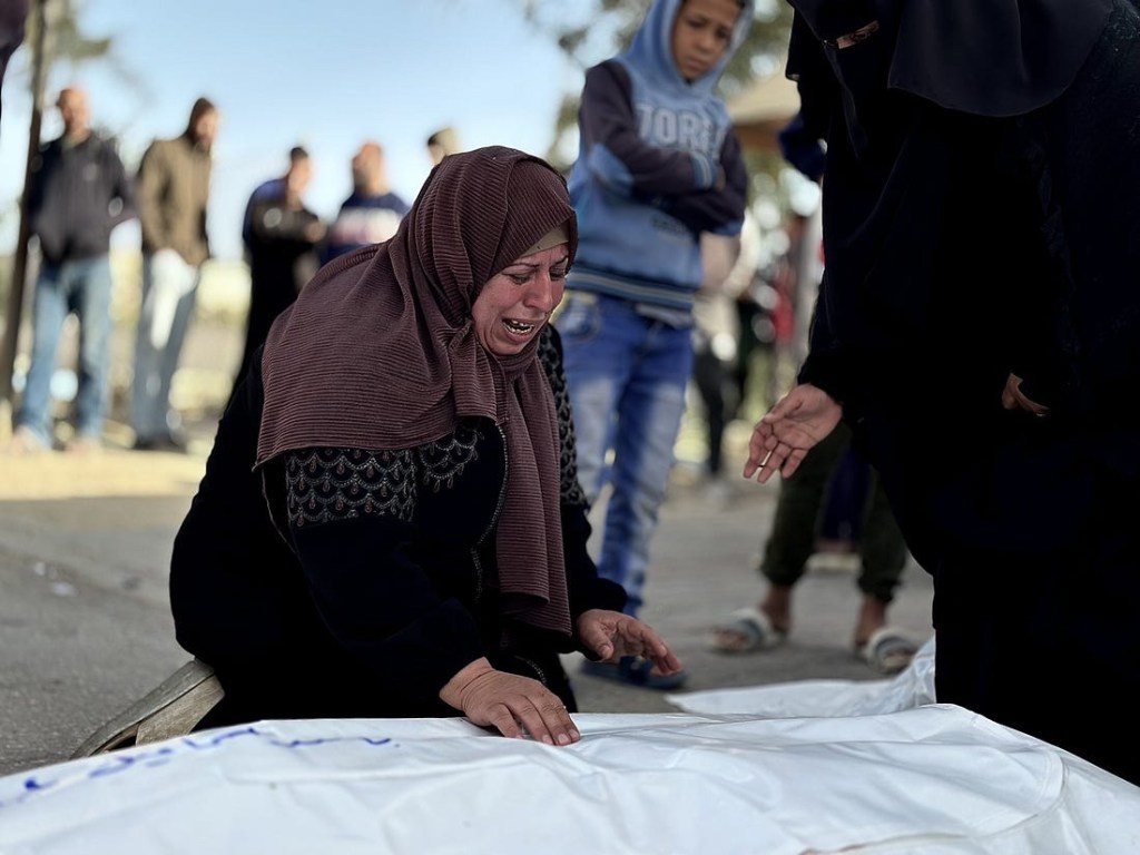 In hospitals strained by 15 months of bombardment, piles of bodies in white plastic sheets smeared with blood were stacked up as casualties were brought in. The health ministry said many of the dead were children, and 562 people were wounded.